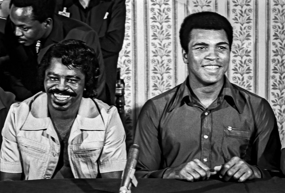 James Brown and Muhammad Ali at a press conference for the Rumble in the Jungle.